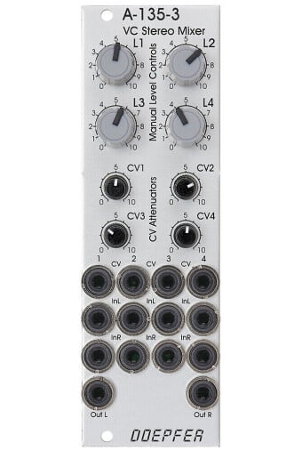 Doepfer A-135-3 Voltage Controlled Stereo Mixer (Slim Line Series): Kompakter Stereo-Mixer mit CV-Steuerung