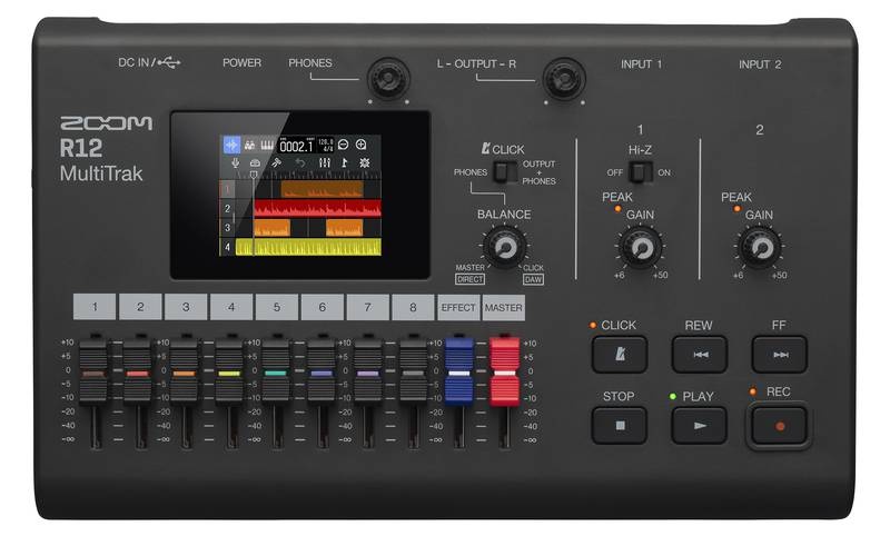 Der Zoom R12 vereint digitalen Recorder, Drumcomputer und Sequencer in einem kompakten Gerät. Perfekt für Musiker und Produzenten, die unterwegs kreative Ideen aufnehmen, bearbeiten und arrangieren möchten.