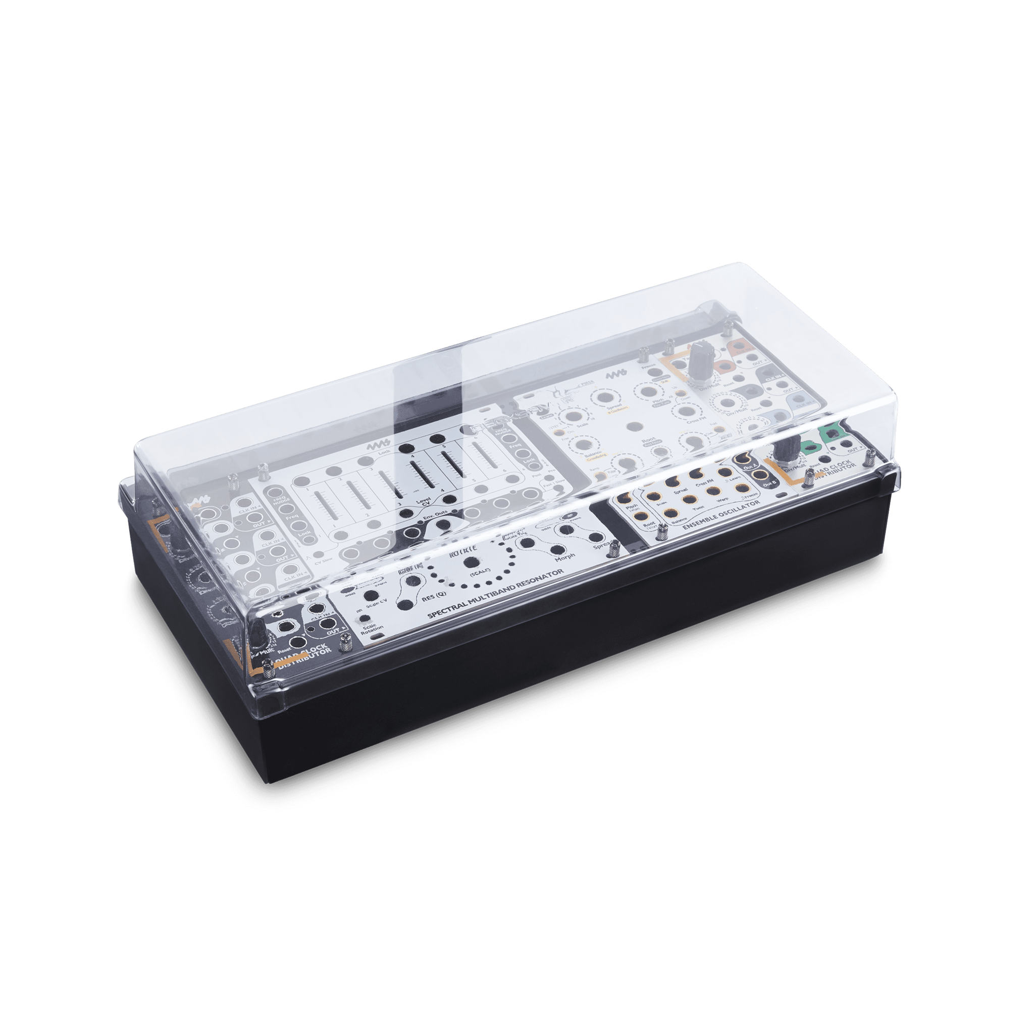 The 4MS Company POD64X is a compact, portable enclosure for your Eurorack modules. The Decksaver cover is the perfect solution to protect these valuable and often delicate modules. Constructed from ultra-durable polycarbonate, the cover fits seamlessly over the case, shielding the faceplates, knobs, jacks, and even patched cables from dust, liquids, and physical impact. This is crucial for both mobile use and long-term studio storage, preventing accidental cable breaks or dust build-up.