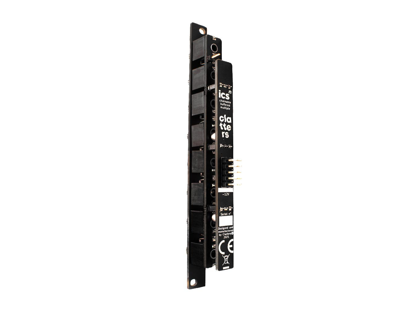 Meerdere ICS kunnen worden gepatcht en aan elkaar worden gekoppeld met behulp van de headers aan de achterkant van de module en de jumperclip die in het pakket is inbegrepen, waardoor er verschillende configuraties ontstaan: door langere jumperdraden (niet inbegrepen) te gebruiken om uw ICS-modules met elkaar te verbinden, kunt u uw signalen dupliceren en ze vanaf verschillende plaatsen op uw eurorack-systeem bereikbaar maken.