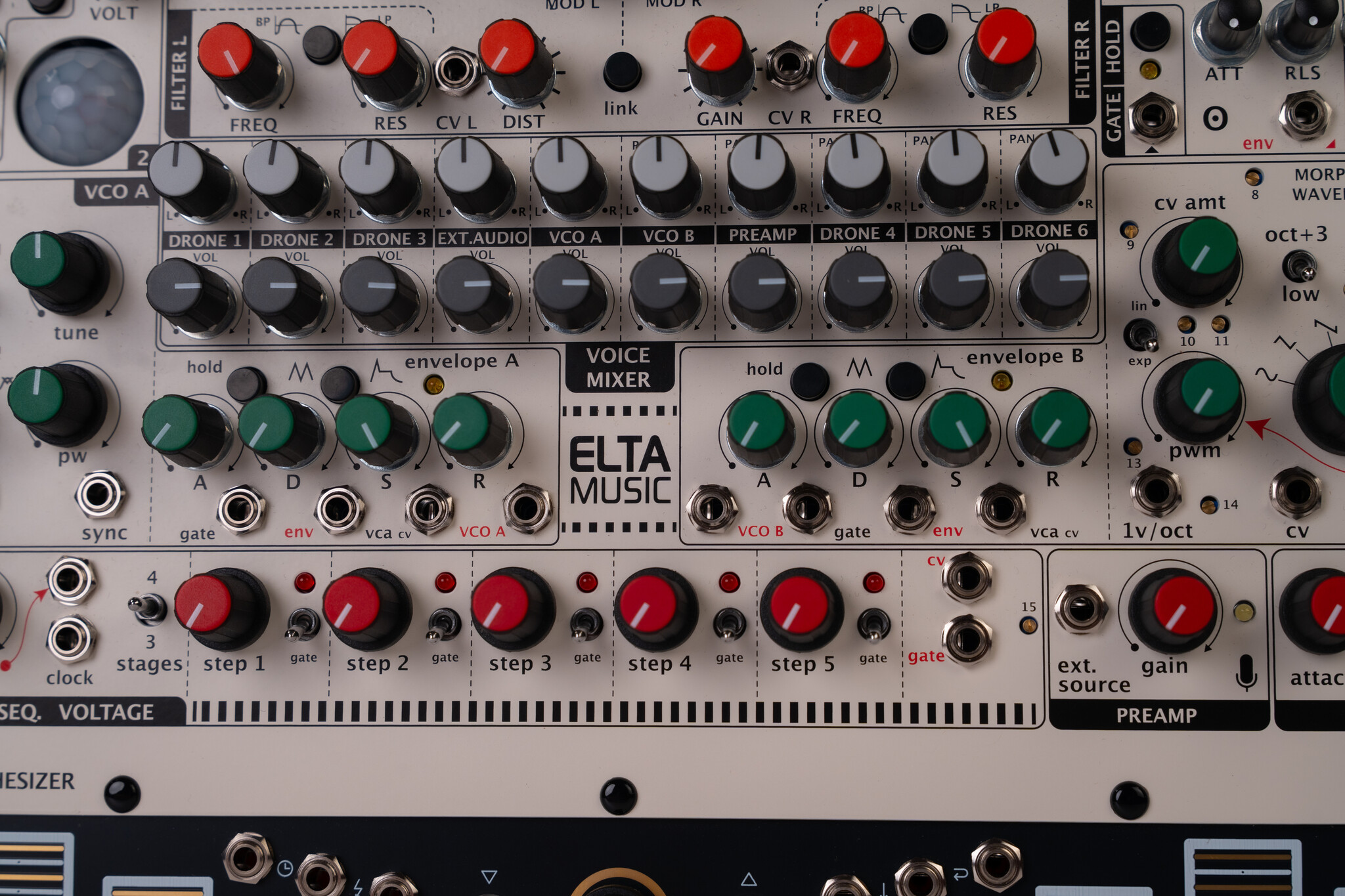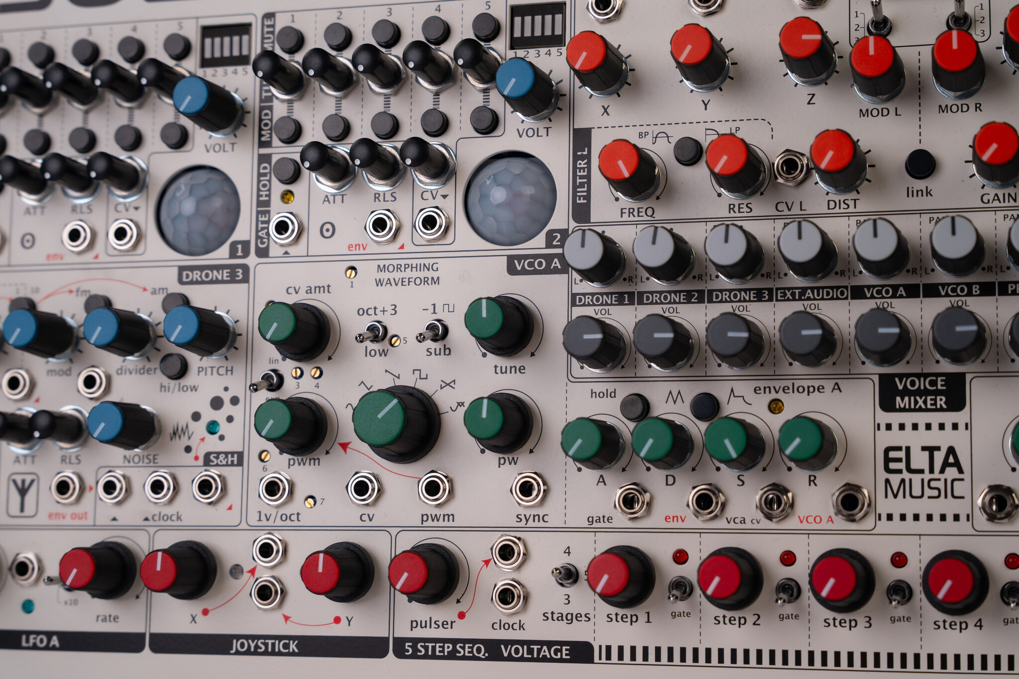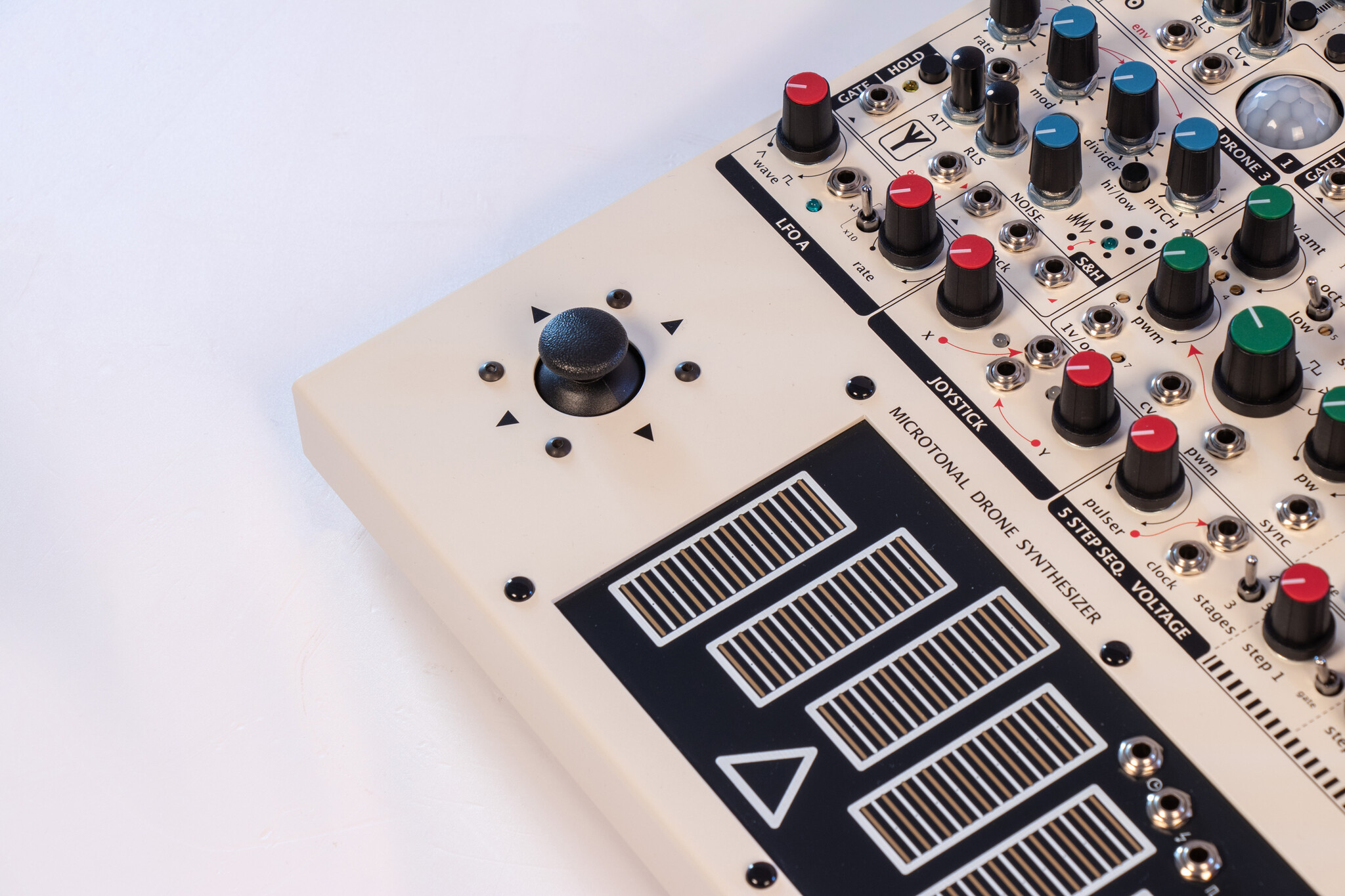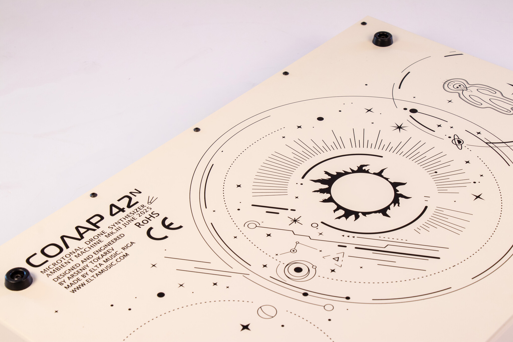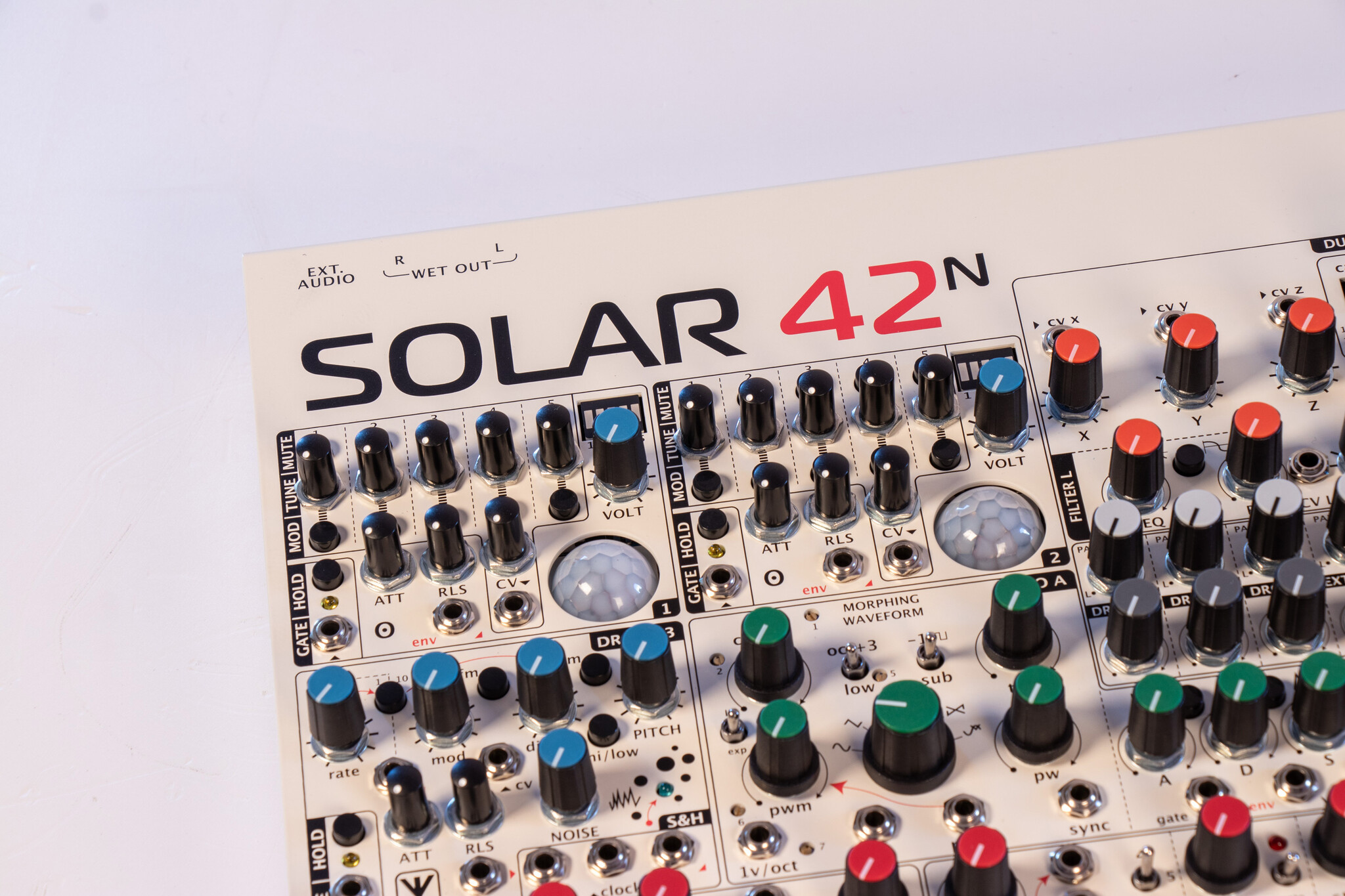 SOLAR-42F is an analogue microtonal ambient drone machine. It is an improved model of the SOLAR 50.