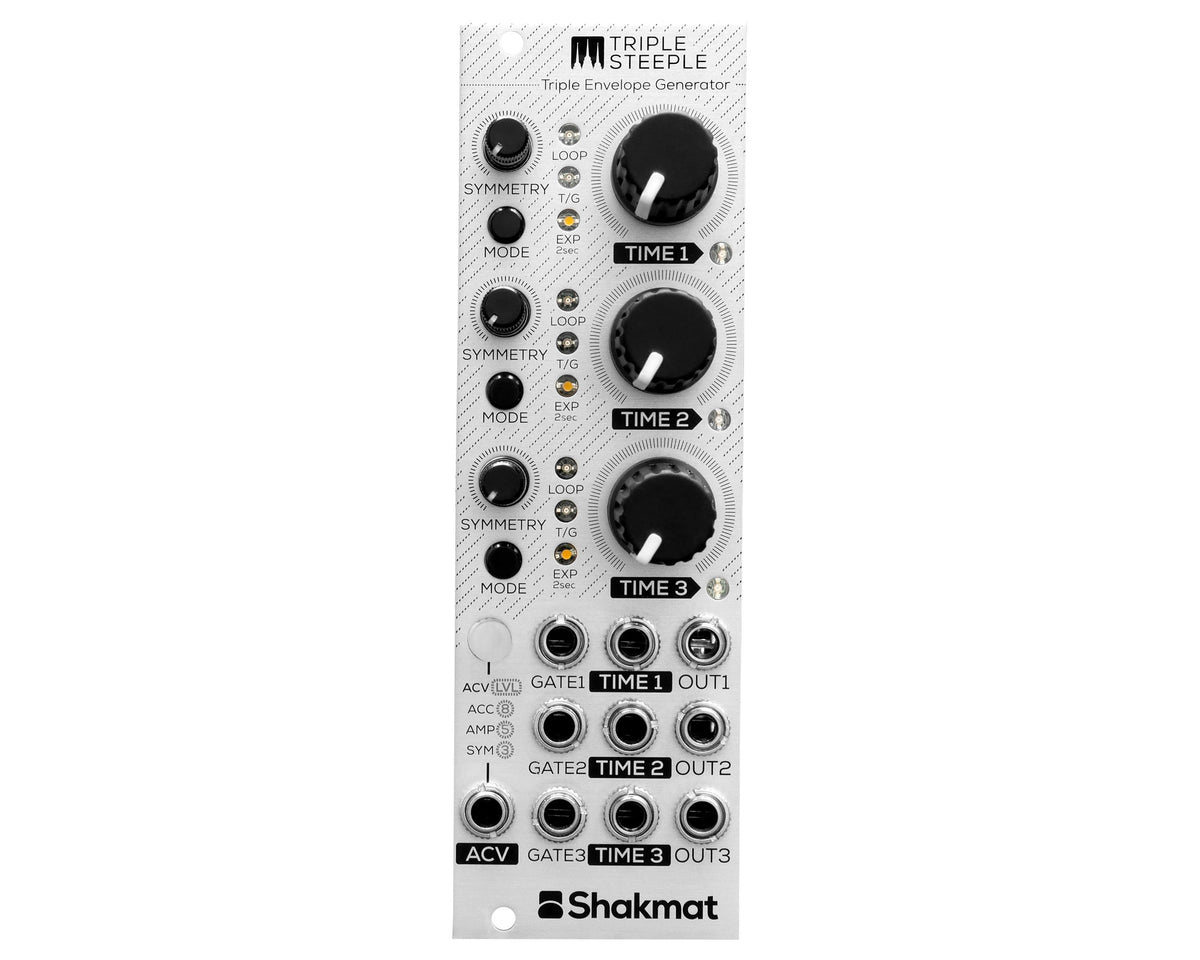 De Triple Steeple is een nauwkeurig ontworpen 3-kanaals envelope generator voor modulaire muzikanten die volledige controle willen over hun modulaties. Elk kanaal beschikt over aparte instellingen voor tijd en symmetrie, met vijf envelope-modi: trigger, gate, loop, gated loop en klokgesynchroniseerd.
